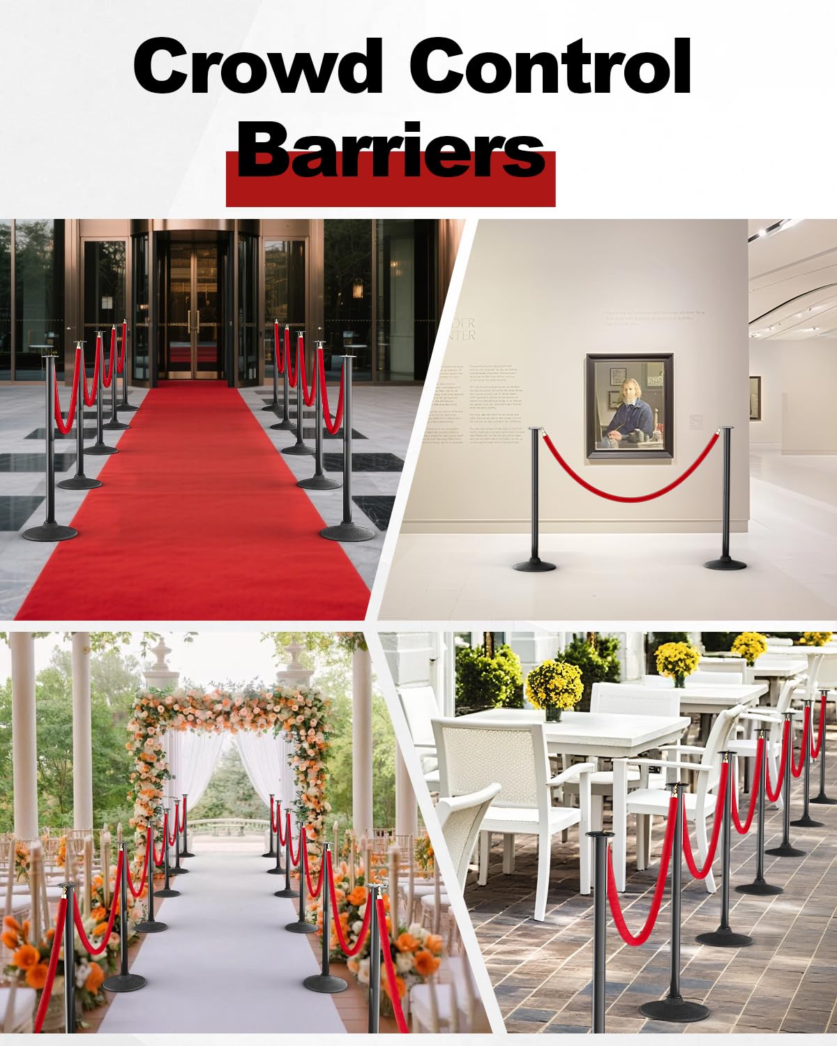 - Multiple Uses: Red velvet rope safety barrier used for crowd control, red-carpet events, party, theaters, hotels, restaurants, museums, stores, concerts, weddings